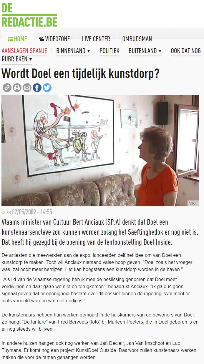 Dàt alles is het gevolg van overheden die nu al maanden aan een stuk rondtoeteren dat Doel een dorp is dat 'toch wegmoet'. En wie wil er nu nog rekening houden met een dorp dat wegmoet? Bovenop laat de Maatschappij Linkerscheldeoever het dorpsbeeld bewust verloederen door ramen en deuren te laten openstaan en tuinen te laten verwilderen. Die Maatschappij heeft dus in tijden van crisis wel centen om gratis een veelkleurige nieuwsbrief vol geleuter te verspreiden. Niet om de woonkwaliteit van de huizen in Doel te garanderen. Niet om het patrimonium dat haar is toevertrouwd in goede orde te beheren.
